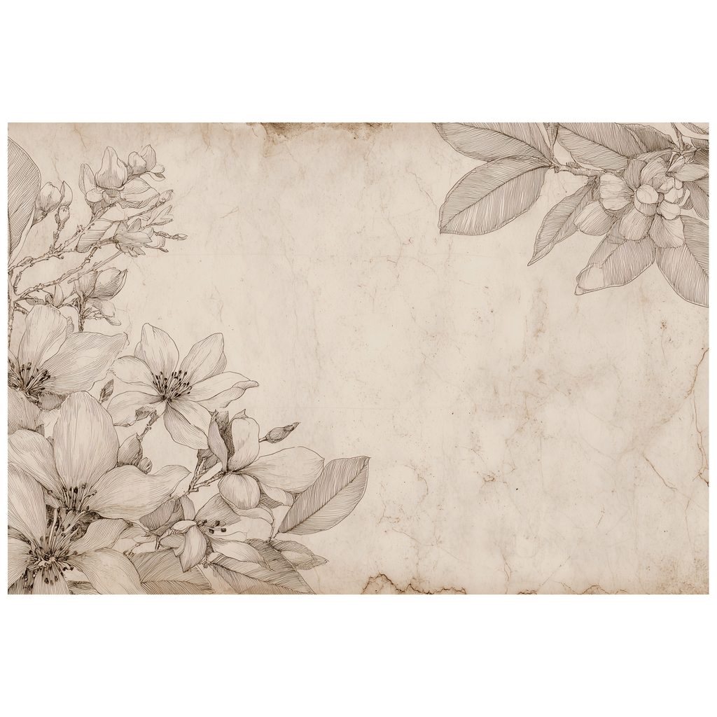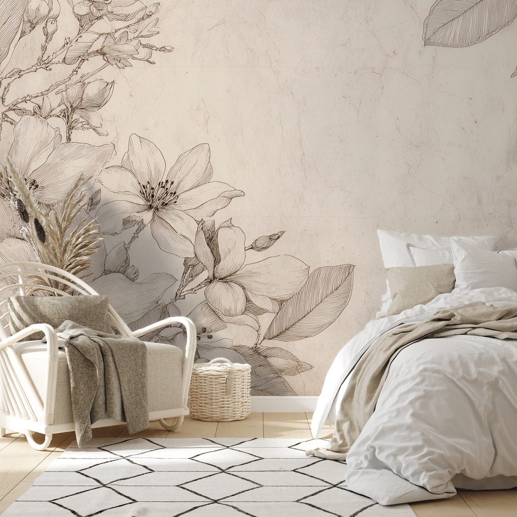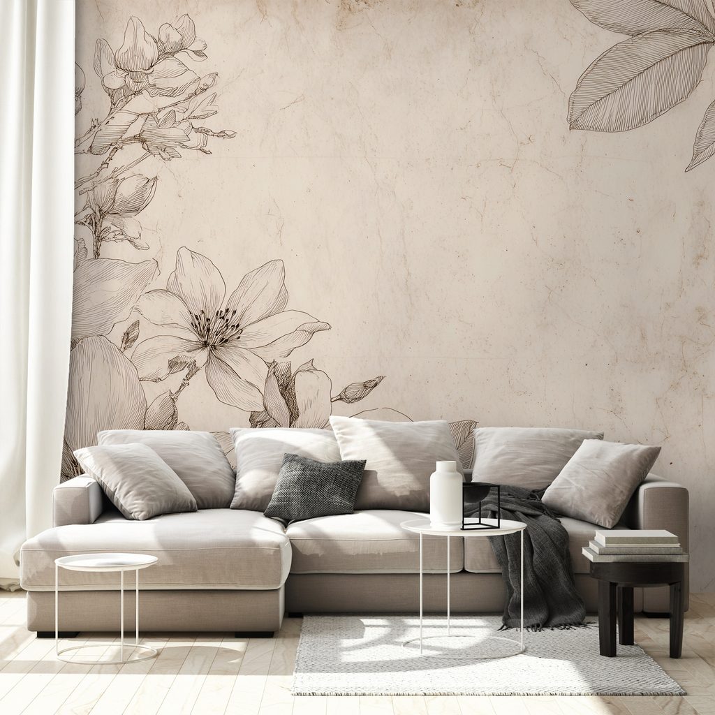 Zelfklevend fotobehang vintage bloemenillustraties op beige achtergrond